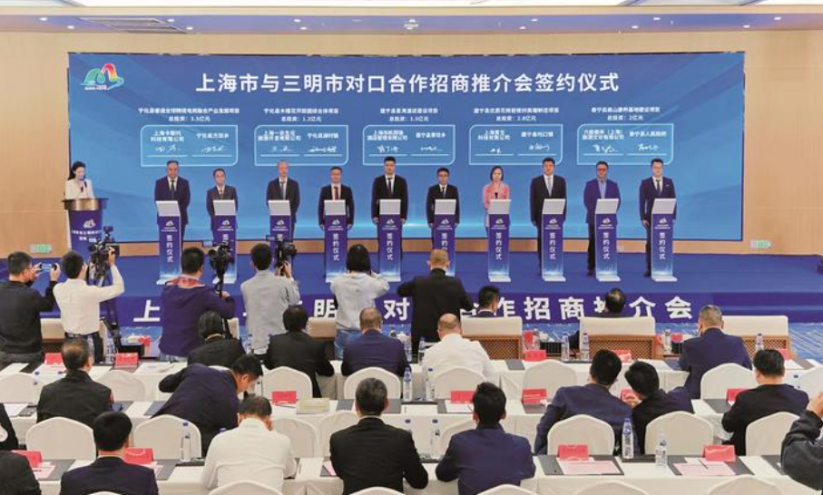 11月8日,上海市与三明市对口合作招商推介会在上海三明大厦举行。(全媒体记者 周志鸿摄) 本报讯11月8日, 在第七届中国国际进口博览会召开之际,上海市与三明市对口合作招商推介会在上海三明大厦举行。三明市市长李春,上海市政府合作交流办副主任强鹏程在推介会上致辞。 上海市商务副主任刘敏,上海市国资委副主任陈东,上海市浦东新区副区长吕雪城,上海市虹口区委常委、副区长吴伟平,杨浦区委常委、常务副区长尼冰,上海市嘉定区副区长魏晓栋,三明市委常委、常务副市长杨国昕,三明市政协副主席罗金水等出席。 受市委书记李兴湖委托,李春代表三明市委、市政府向与会各位嘉宾表示欢迎,向长期以来关心支持三明发展的各界人士表示感谢。她说,三明有好政策、好山水、好产业、好环境,是一片充满希望和活力的热土,是一块投资兴业的宝地,是一个干事创业的好地方。希望大家把三明作为投资优选地,推动更多产业、项目在三明布局,共享三明发展新机遇,共创三明美好未来。 三明将始终把企业家当作自己人,把企业的事当成自己的事,为大家在三明发展给予最高礼遇、实施最好政策、提供最优服务。 强鹏程说,革命老区重点城市开展对口合作是党中央、国务院确定的重大的区域发展战路。沪明对口合作关系建立以来,两地携手推进对口合作工作不断走深走实。希望各位企业家能够带着促进两地合作、促进企业发展的美好愿望,到三明投资兴业,在上海谋求发展。上海市政府合作交流办将全力提供支持和帮助,加强与三明市委、市政府沟通协调,保障大家无后顾之忧。 推介会上,上海经信发展研究中心、上海挚达科技、上海墨砾新材料、上海仪电集团、上海锦江国际、 上海临港集团、永安市永翔发展集团等已在三明投资或对三=明有情怀的上海企业家和专家,为三明钢铁与装备制造、生物医药、石墨和石墨烯、氟新材料、数字经济、文旅康养、高端纺织等7条特色产业链,沪明临港产业园、浦东新区金桥(永安) 产业园等2个沪明共建园区“代言”,推介产业链基本情况、 发展路径、对外招商项目,分享投资建议。 三明市委、市政府对此次投资三明项目签约仪式高度重视、精心组织,经过前期的充分酝酿和深入对接,28个项目在推介会现场签约,总投资118. 86亿元。 据了解,本次系列活动得到上海市政府合作交流办和上海市经信委、商务委、国资委,以及浦东新区、虹口区、杨浦区、嘉定区等单位的大力支持。推介会共有130名客商参会,均为上海方面客商,数量为历年最多。