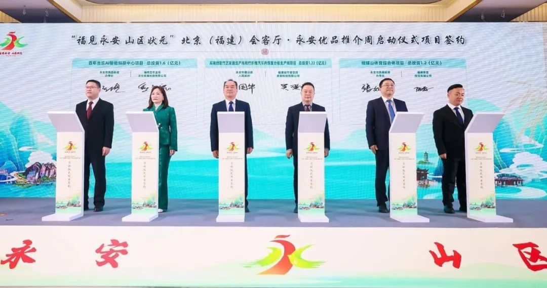 仪式现场,高潮迭起,一批涵盖新型碳材料革新、乡村振兴宏图、竹产业勃兴、文旅康养等领域总投资达29.74亿元的9个合作项目,在今天正式达成签约。这些合作项目,犹如一股股强劲春风,将为永安的经济社会发展注入澎湃活力,迈向更加辉煌的篇章。